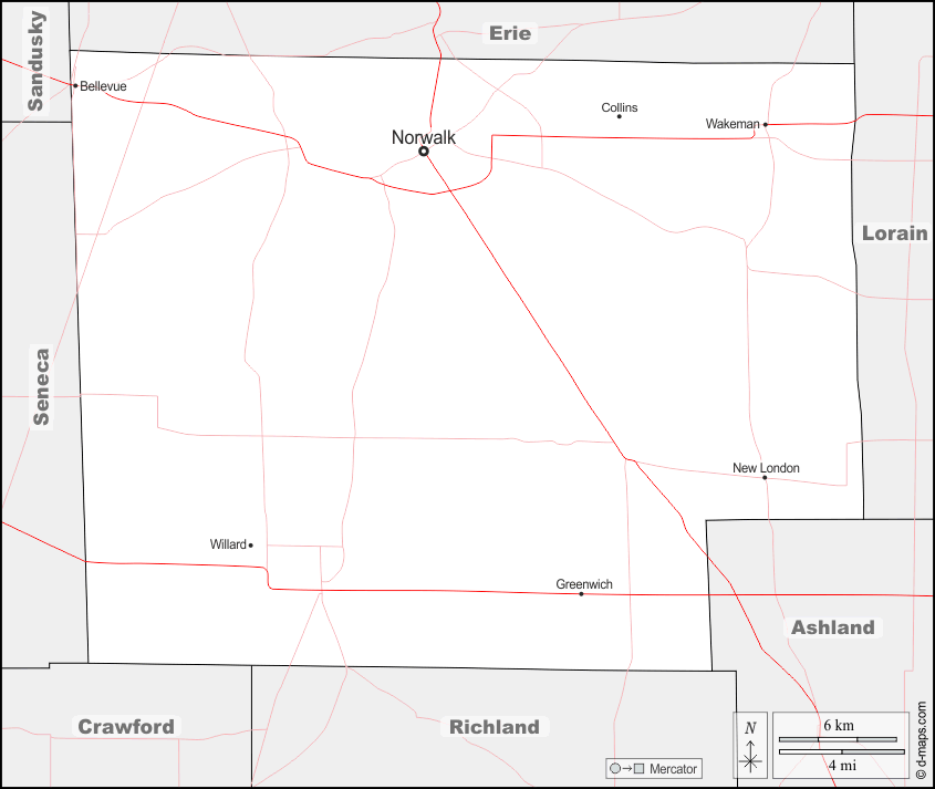 d-maps > Estados Unidos da América (USA) > Ohio > Condado de Huron > fronteiras, principais cidades, estradas, nomes