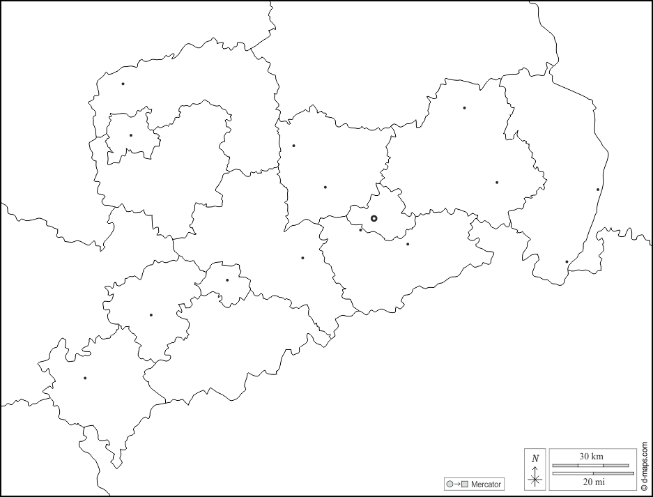 d-maps > Europa > Alemanha > Estado Livre da Saxónia > fronteiras, distritos, principais cidades, branco