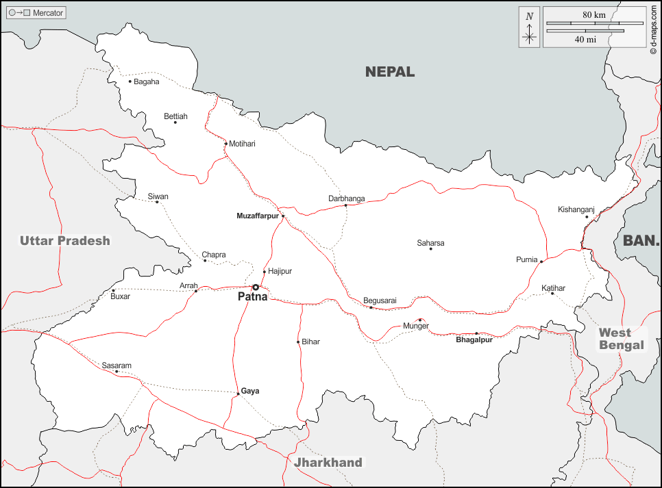 Ásia > Índia > Bihar > fronteiras, principais cidades, estradas, nomes