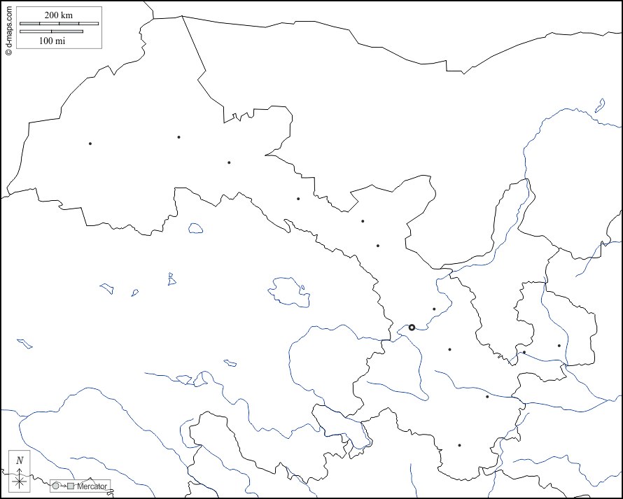 d-maps > Ásia > China > Gansu > fronteiras, hidrografia, principais cidades, branco