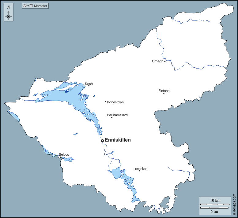 d-maps > Europa > Reino Unido > Fermanagh and Omagh > contornos, hidrografia, principais cidades, nomes