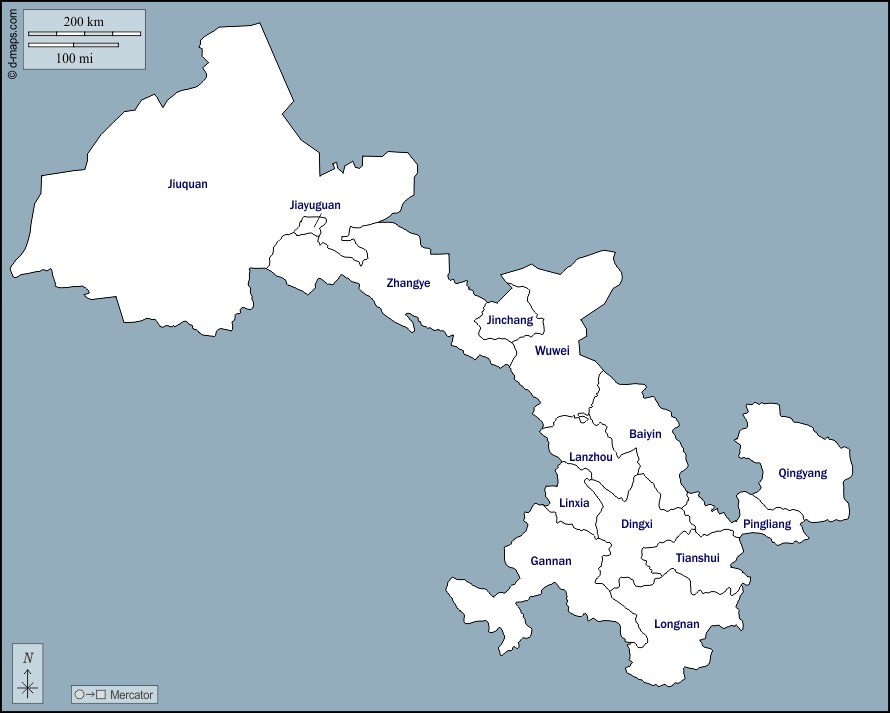 d-maps > Ásia > China > Gansu > contornos, prefeituras, nomes