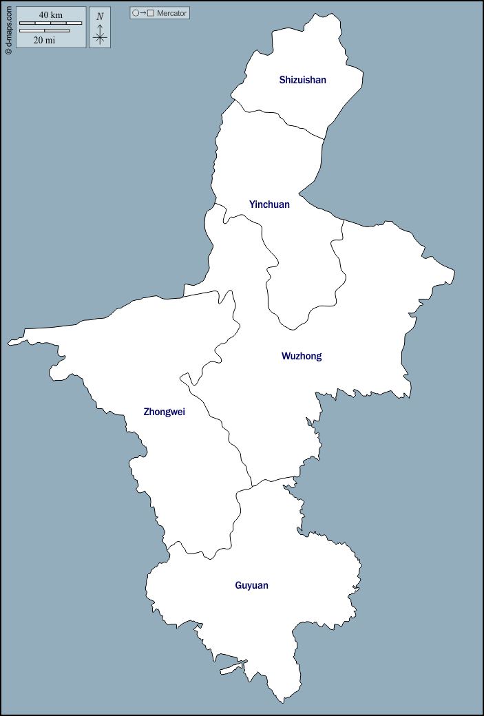 d-maps > Ásia > China > Ningxia > contornos, prefeituras, nomes