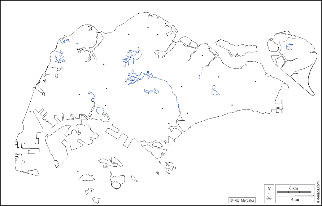 d-maps > Ásia > Singapura > contornos, hidrografia, bairros, branco