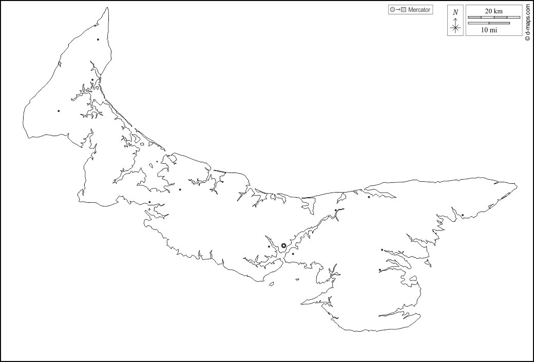 d-maps > Américas > Canadá > Ilha do Príncipe Eduardo > contornos, principais cidades, branco