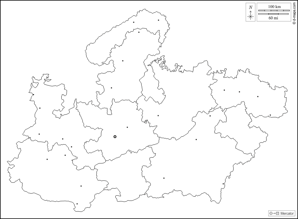 d-maps > Ásia > Índia > Madia Pradexe > contornos, divisões, principais cidades, branco