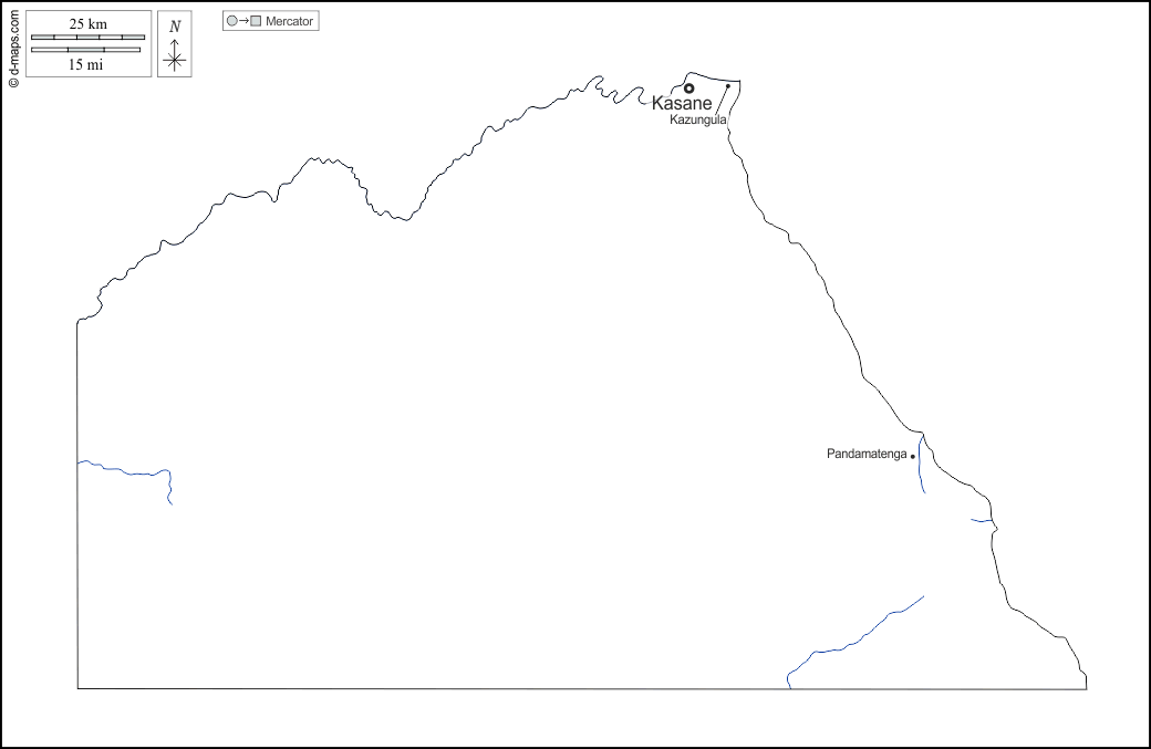 d-maps > África > Botswana > Distrito do Chobe > contornos, hidrografia, principais cidades, nomes, branco