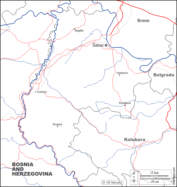 d-maps > Europa > Sérvia > Macva > fronteiras, hidrografia, principais cidades, estradas, nomes, branco