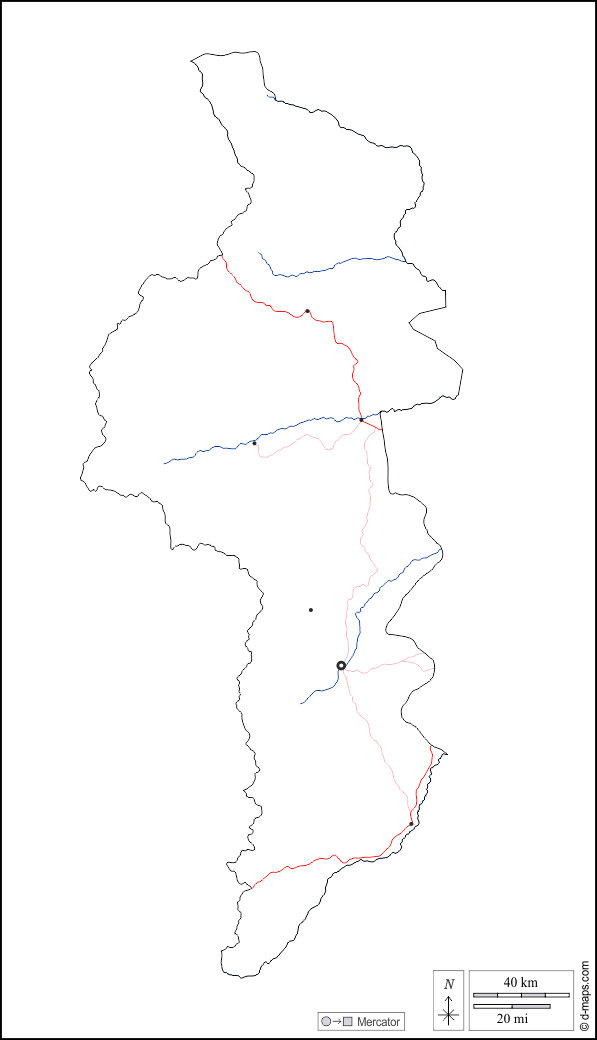 d-maps > África > Congo > Departamento Cuvette-Ouest > contornos, hidrografia, principais cidades, estradas, branco