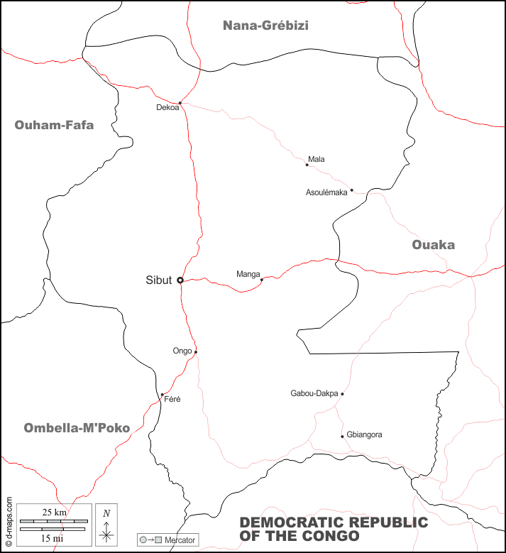 d-maps > África > República Centro-Africana > Kémo > fronteiras, principais cidades, estradas, nomes, branco