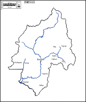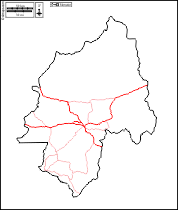 d-maps > África > República Centro-Africana > Ouaka > contornos, principais cidades, estradas, branco