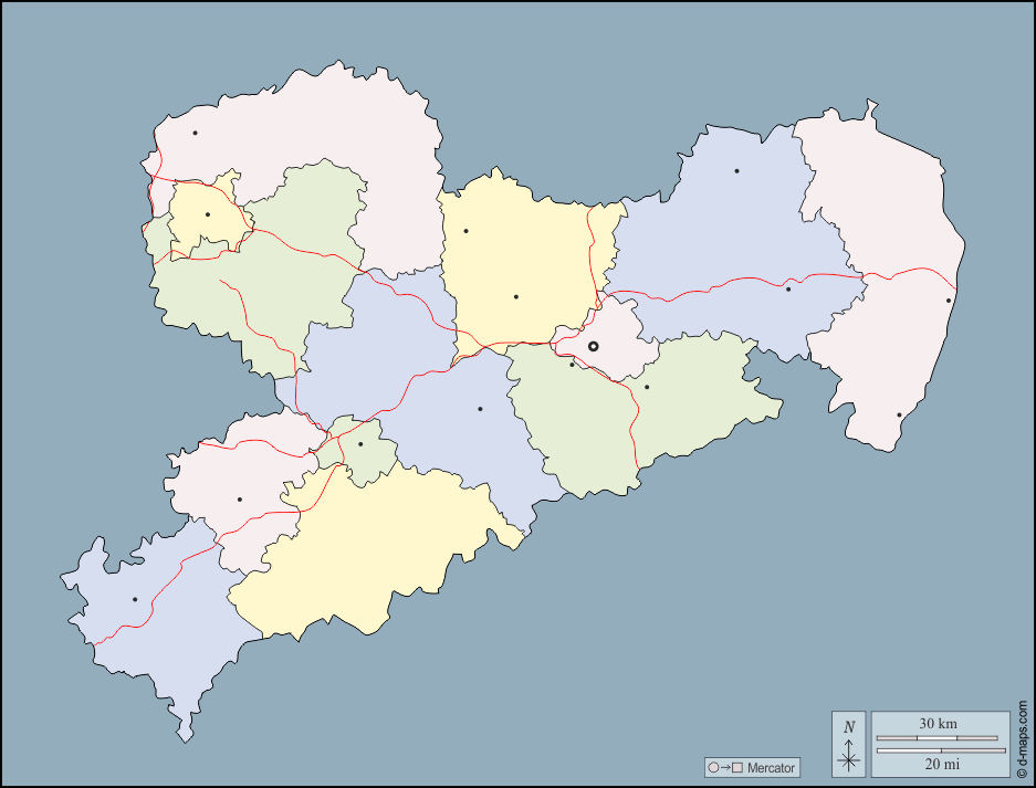 d-maps > Europa > Alemanha > Estado Livre da Saxónia > contornos, distritos, principais cidades, estradas, cor