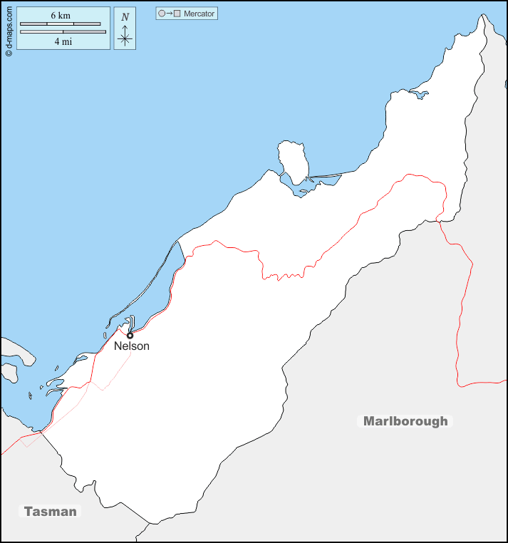 d-maps > Oceânia > Nelson > fronteiras, principais cidades, estradas, nomes