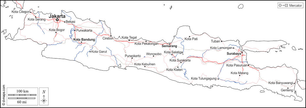 d-maps > Азия > Индонезия > Ява > границы, гидрографии, Главные города, дорог, имена, Белый