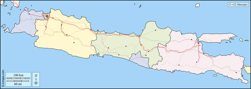Азия > Индонезия > Ява > границы, провинциях, Главные города, дорог, Цвет