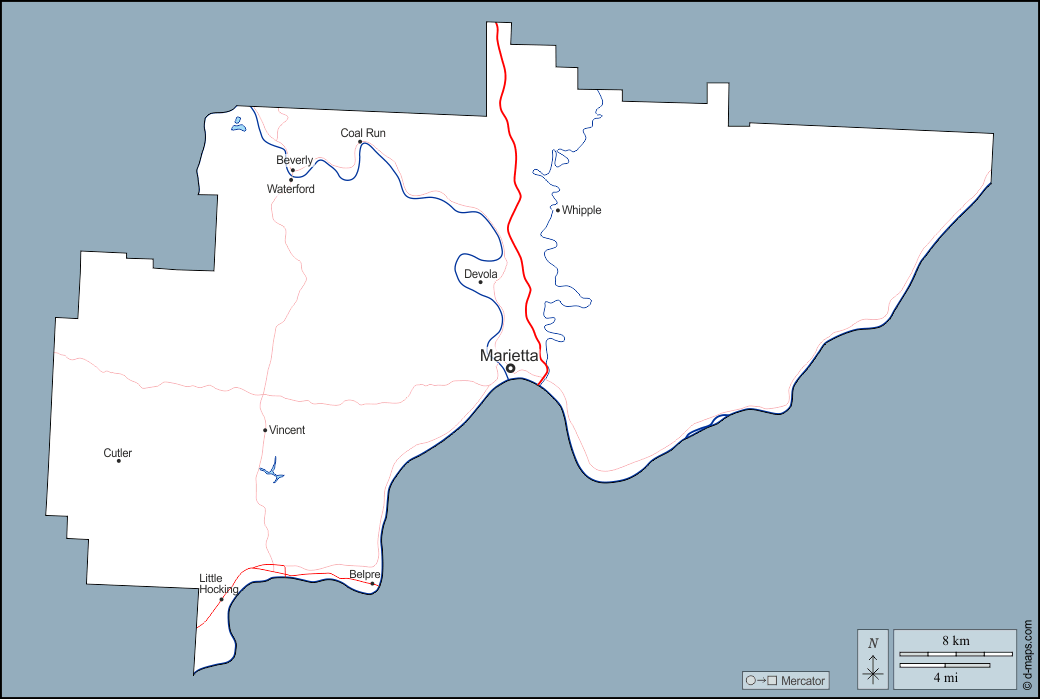 d-maps > Соединённые Штаты Америки > Огайо > Вашингтон > контур, гидрографии, Главные города, дорог, имена