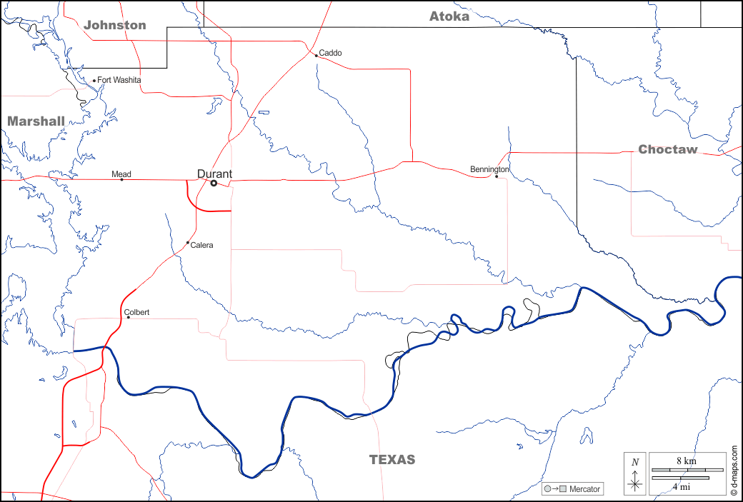 d-maps > Соединённые Штаты Америки > Оклахома > Брайан > границы, гидрографии, Главные города, дорог, имена, Белый