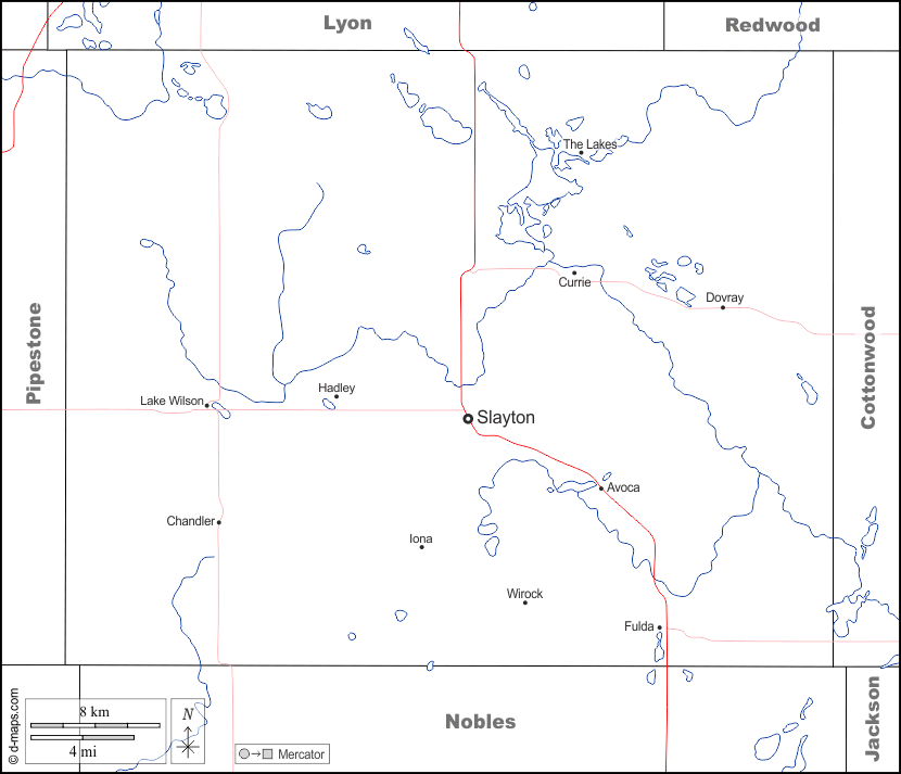 d-maps > Соединённые Штаты Америки > Миннесота > Мюррей-Каунти > границы, гидрографии, Главные города, дорог, имена, Белый