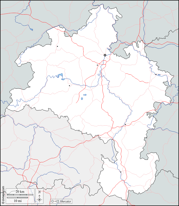 d-maps > Европа > Германия > Административный округ Кассель > границы, гидрографии, Главные города, дорог