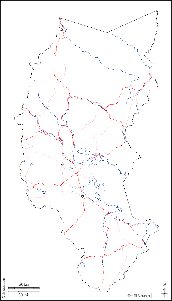 d-maps > Америка > Перу > Пуно > контур, гидрографии, Главные города, дорог, Белый