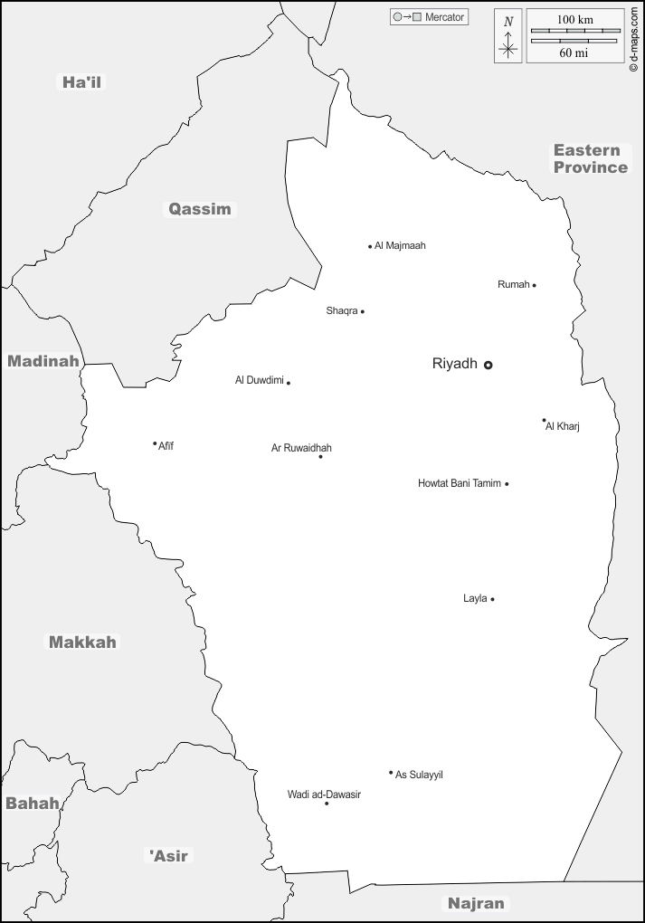 d-maps > Азия > Саудовская Аравия > Провинция Эр-Рияд > границы, Главные города, имена