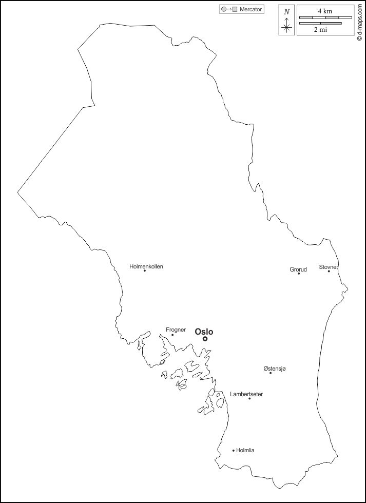 d-maps > Европа > Норвегия > Осло > контур, районов, имена, Белый