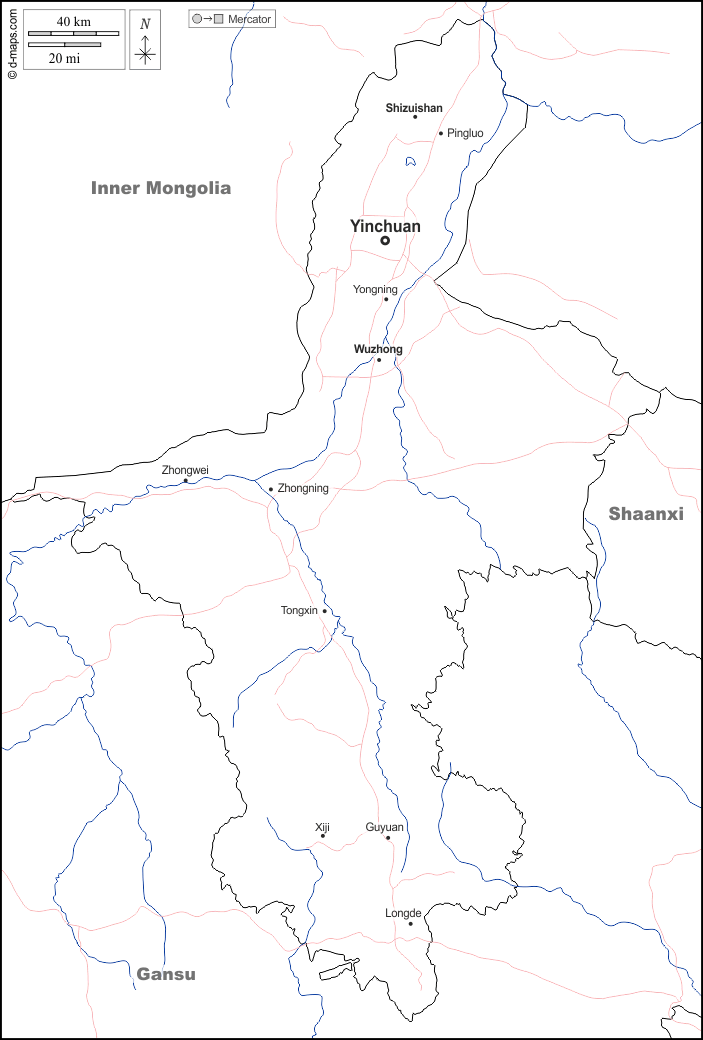 Азия > Китайская Народная Республика > Нинся > границы, гидрографии, Главные города, дорог, имена, Белый