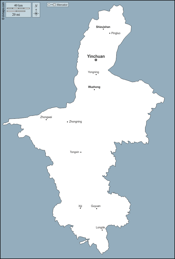d-maps > Азия > Китайская Народная Республика > Нинся > контур, Главные города, имена