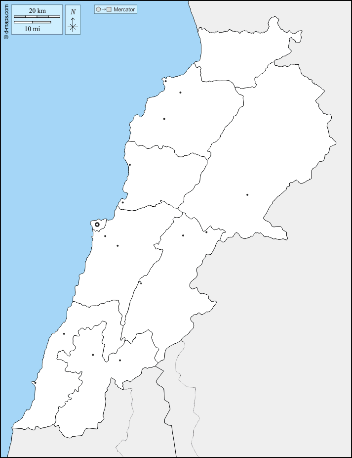 d-maps > Азия > Ливан > Ливан > границы, мухафазах, Главные города