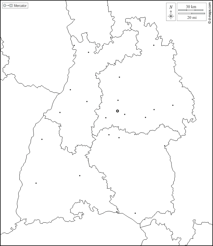 Европа > Германия > Земля Баден-Вюртемберг > границы, Регионах, Главные города, Белый