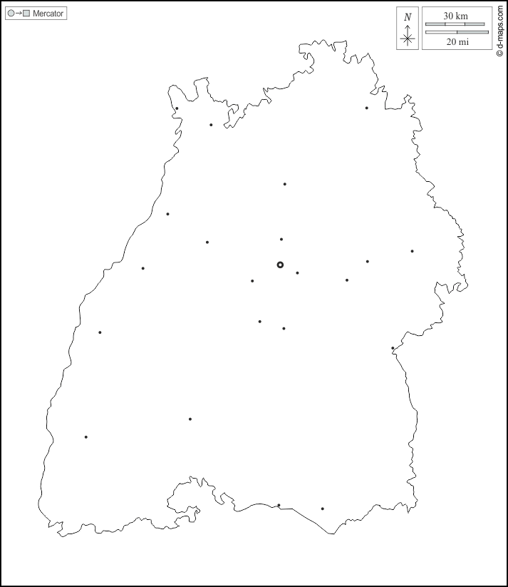Европа > Германия > Земля Баден-Вюртемберг > контур, Главные города, Белый