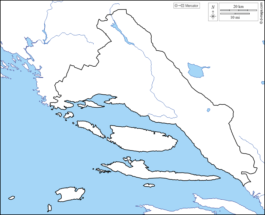 d-maps > Европа > Хорватия > Сплитско-Далматинска > побережья, границы, гидрографии