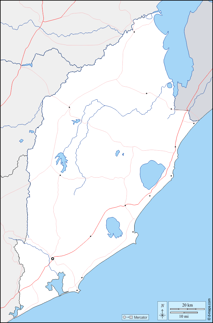 d-maps > Америка > Уругвай > Роча > границы, гидрографии, Главные города, дорог