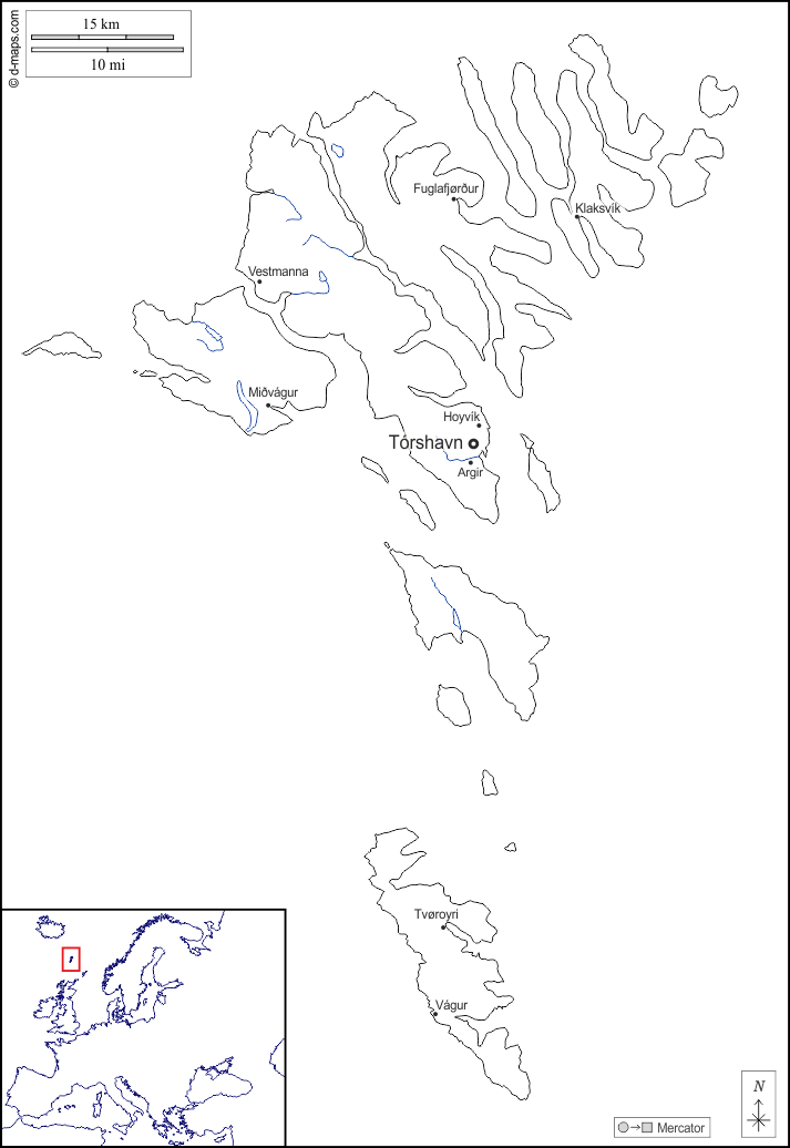 d-maps > Европа > Дания > Фарерские острова > границы, гидрографии, Главные города, имена, Белый