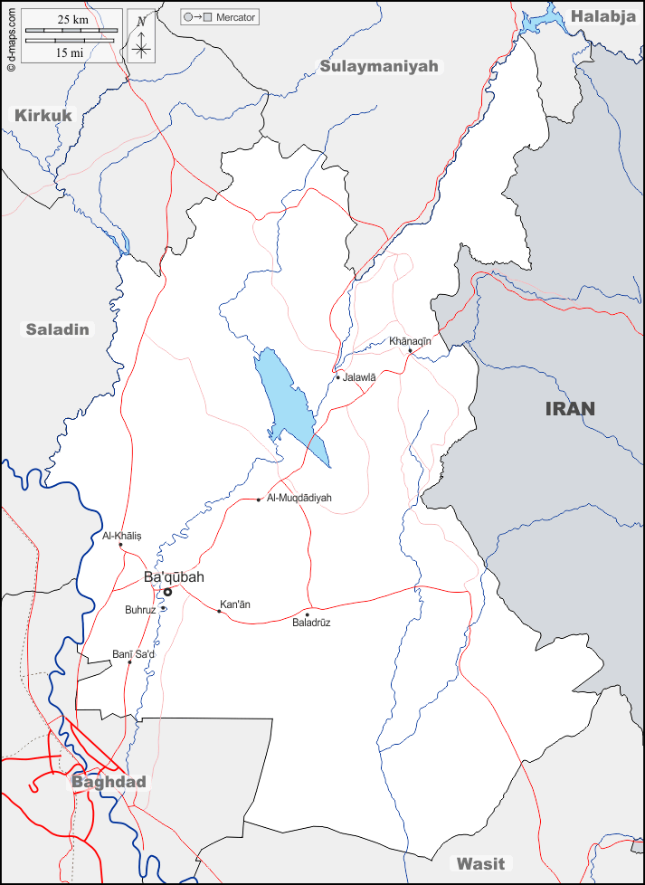 d-maps > Азия > Ирак > Дияла > границы, гидрографии, Главные города, дорог, имена