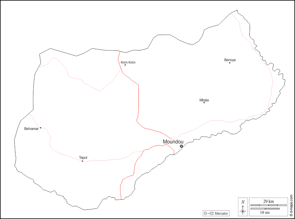 d-maps > Африка > Чад > Западный Логон > контур, Главные города, дорог, имена, Белый