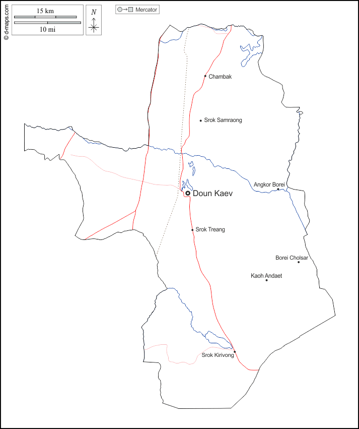 d-maps > Азия > Камбоджа > Такео > контур, гидрографии, Главные города, дорог, имена, Белый