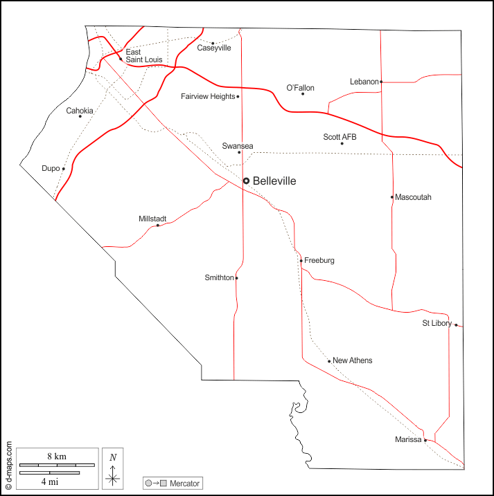 d-maps > Соединённые Штаты Америки > Иллинойс > Сент-Клер > контур, Главные города, дорог, имена, Белый