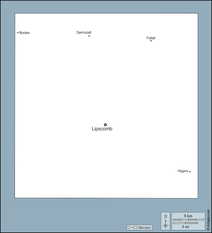 Booker, Darrouzett, Follett, Higgins, Lipscomb.
