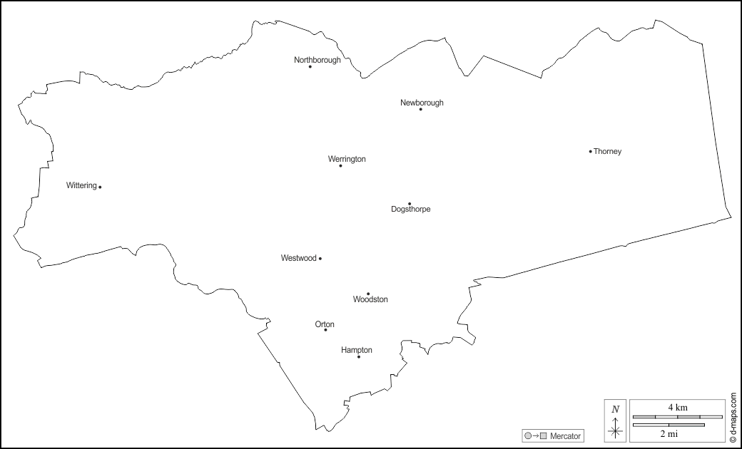 Dogsthorpe, Hampton, Newborough, Northborough, Orton, Thorney, Werrington, Westwood, Wittering, Woodston.