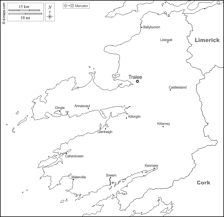 d-maps > 欧洲 > 爱尔兰 > 凱里郡 > 边界, 主要城市, 名称, 白