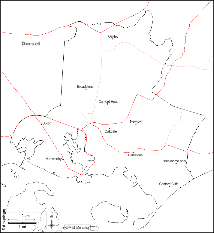 Branksome park, Broadstone, Canford Cliffs, Canford Heath, Hamworthy, Newtown, Oakdale, Oakley, Parkstone, Upton.