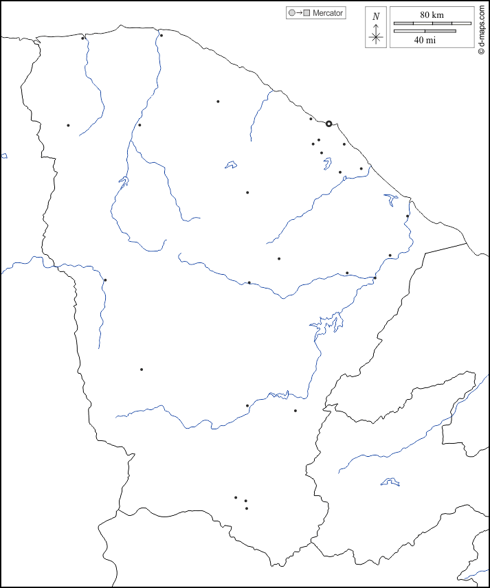 d-maps > 美洲 > 巴西 > 塞阿拉州 > 边界, 水文学, 主要城市, 白