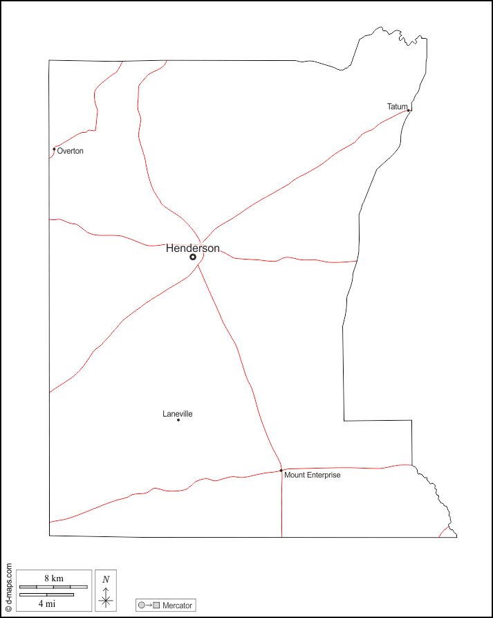 Henderson, Laneville, Mount Enterprise, Overton, Tatum.