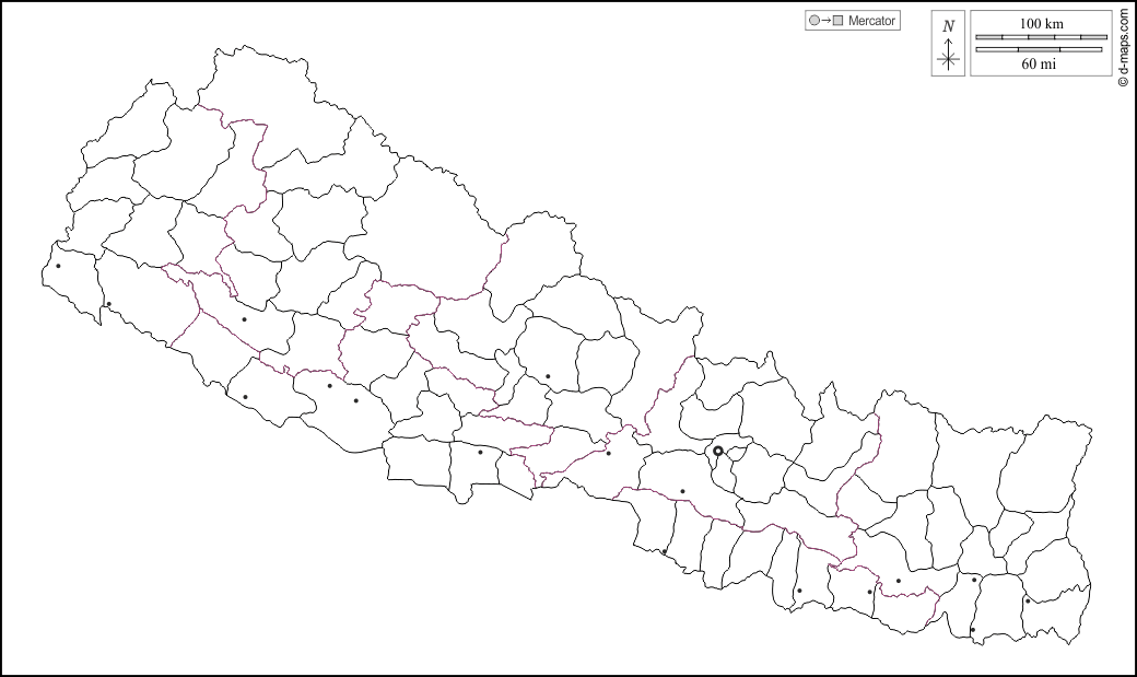 d-maps > 亚洲 > 尼泊尔 > 大纲, 區域, 主要城市, 白