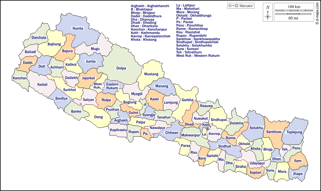 d-maps > 亚洲 > 尼泊尔 > 大纲, 區域, 名称, 颜色, 白