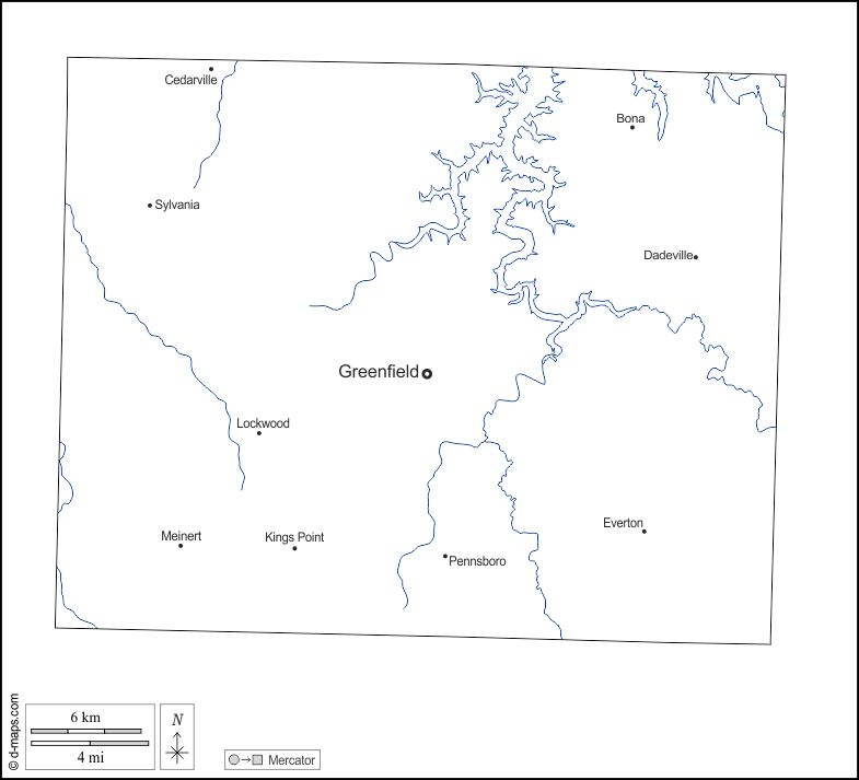 Bona, Cedarville, Dadeville, Everton, Greenfield, Kings Point, Lockwood, Meinert, Pennsboro, Sylvania.