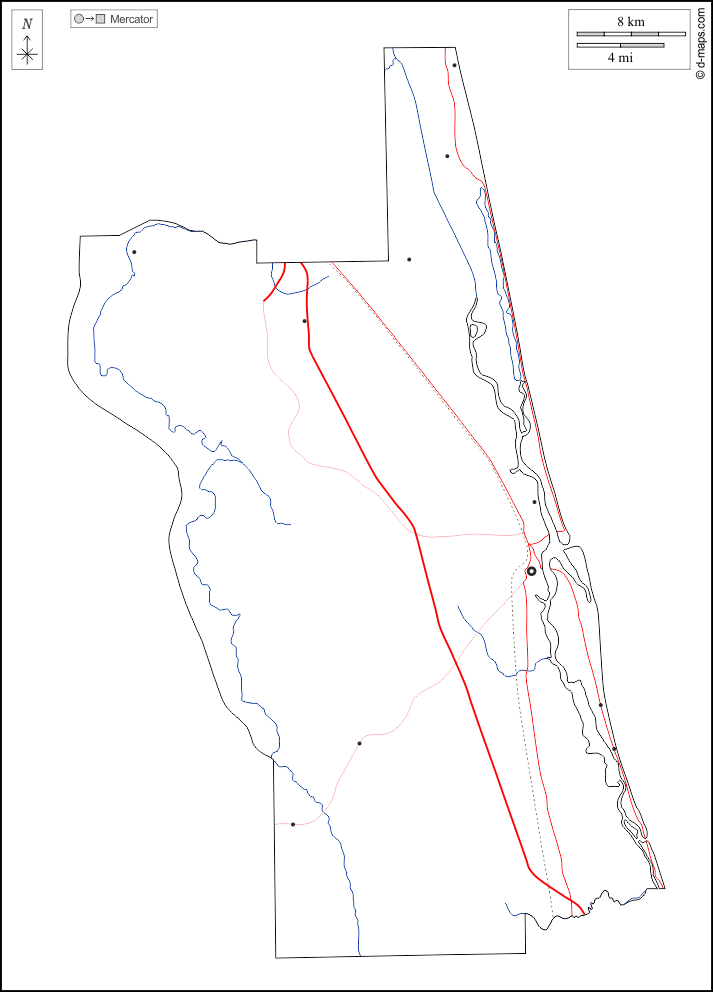 d-maps > 美国 > 佛罗里达州 > 圣约翰县 > 大纲, 水文学, 主要城市, 道路, 白