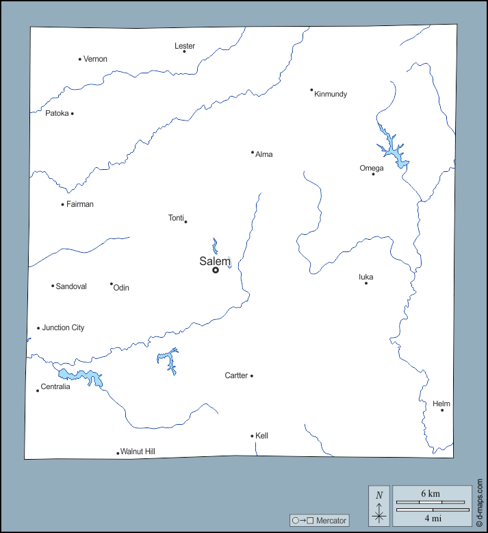 d-maps > 美国 > 伊利诺伊州 > 马里恩县 > 大纲, 水文学, 主要城市, 名称