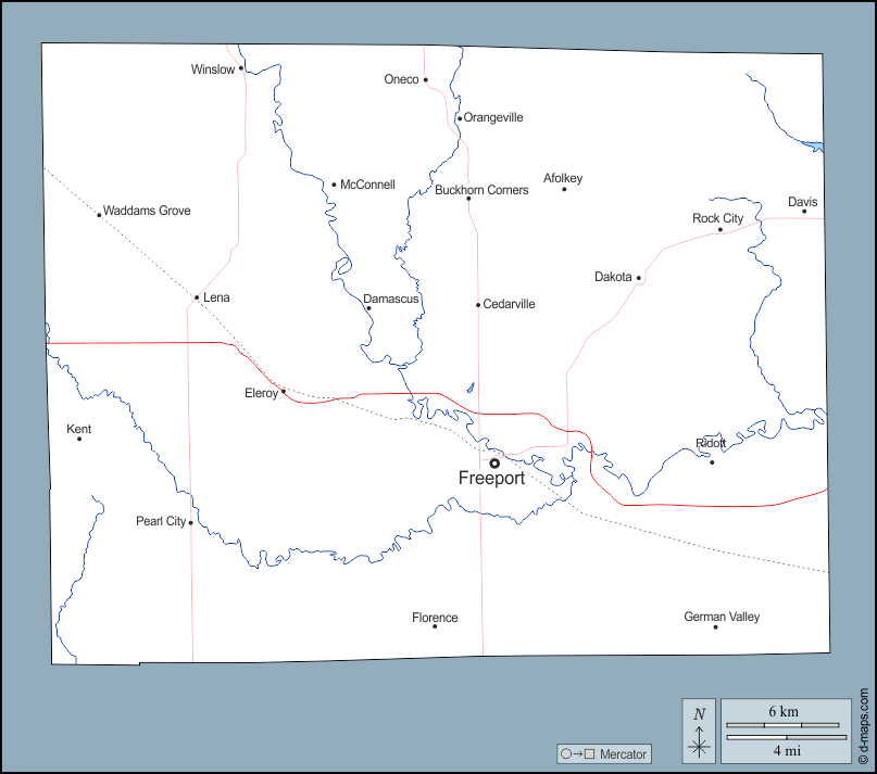 d-maps > 美国 > 伊利诺伊州 > 斯蒂芬森县 > 大纲, 水文学, 主要城市, 道路, 名称